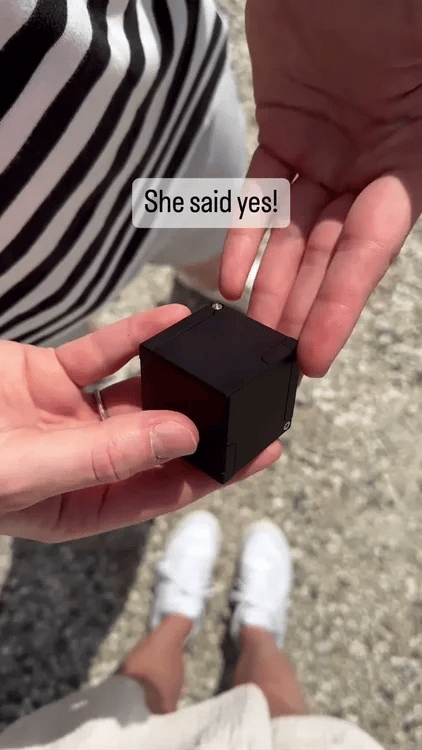 The Kinetic Cube Ring Box isn't just a box- it's a part of proposal. It's unique kinetic design adds a sense of wonder and anticipation to the moment, unfolding in one smooth annd captivating motion that instantly draws attention. Unlike traditional boxes, it creates a visual and traditional impact that makes the reveal unforgettable. When you are down on one knee, every detail matters.